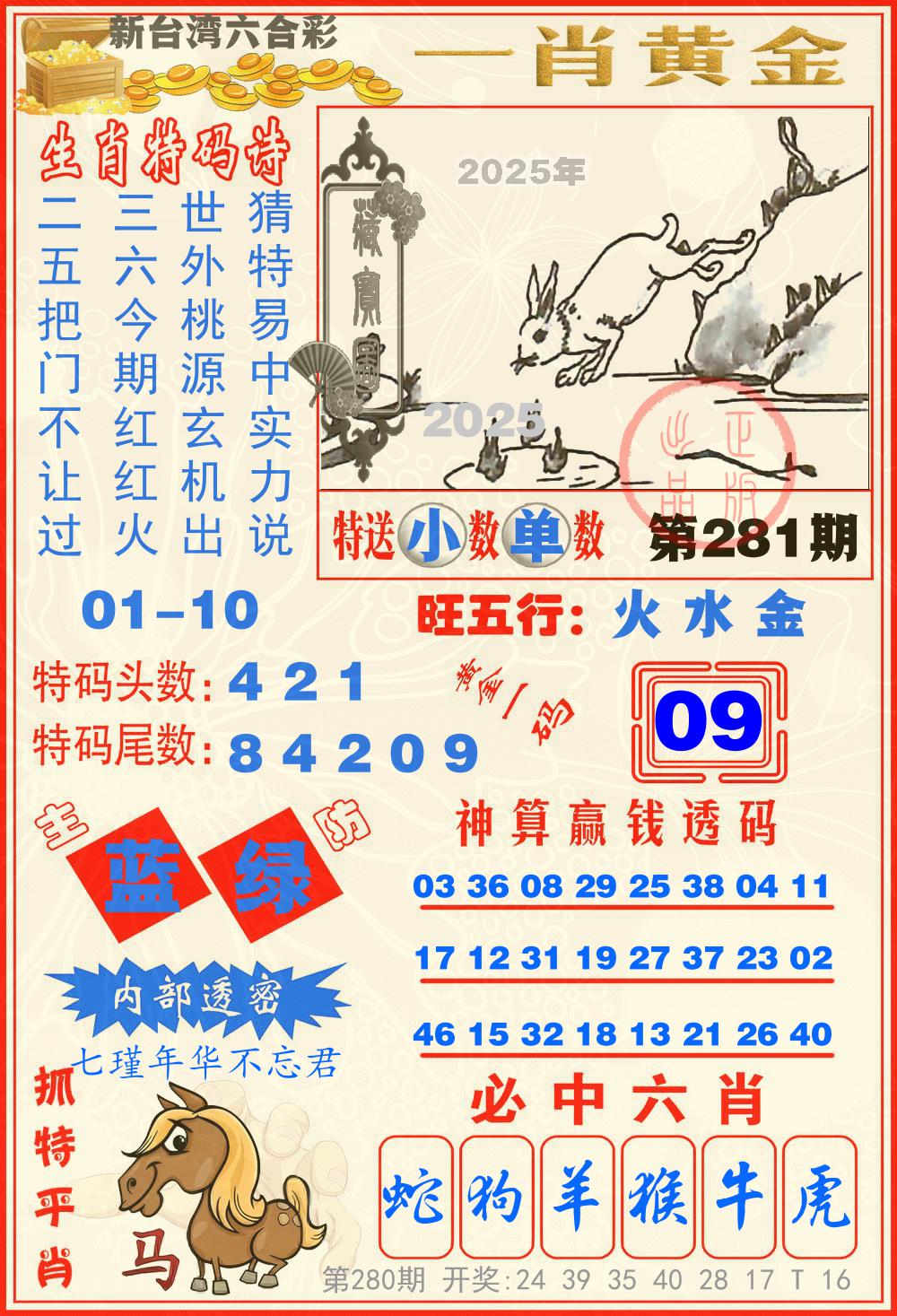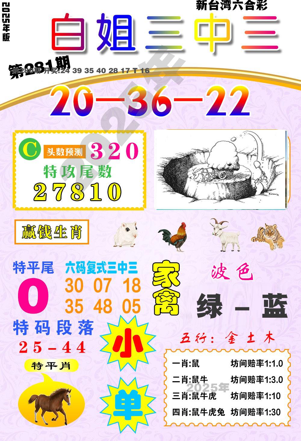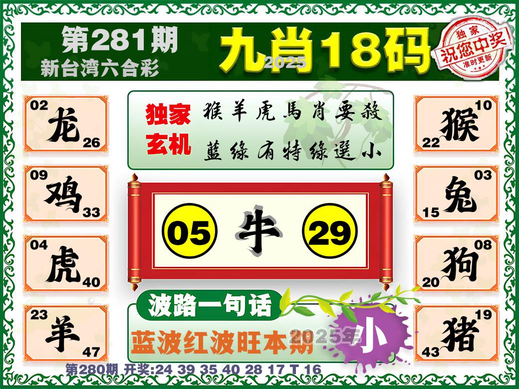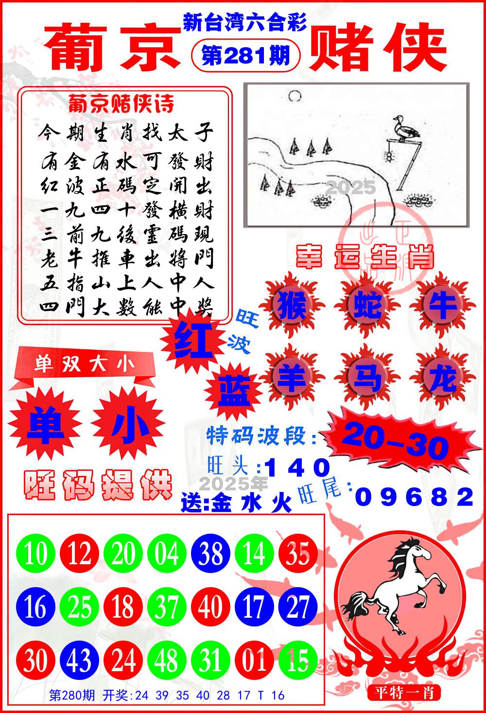2025279期:七尾 9-1-6-0-2-4-3 开:18鼠