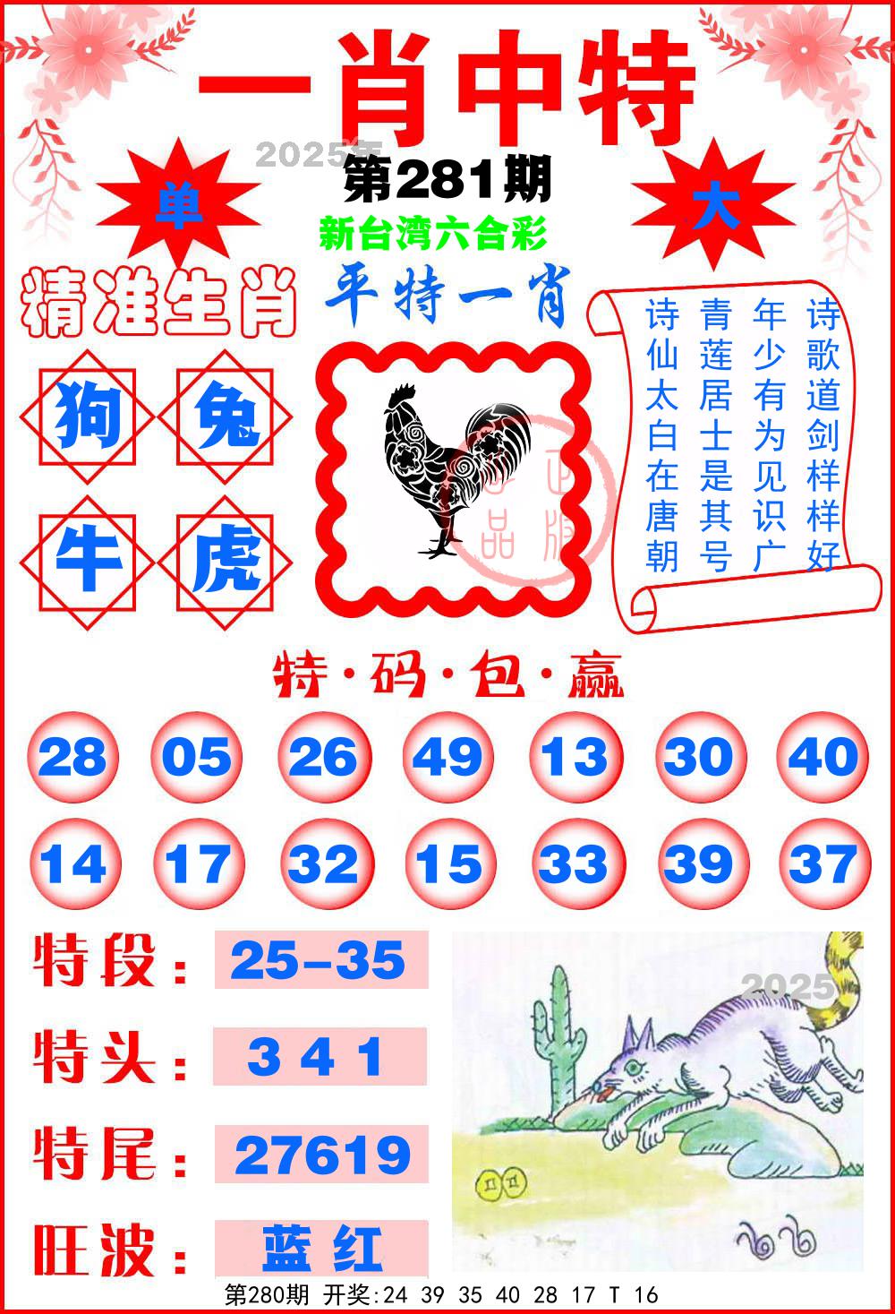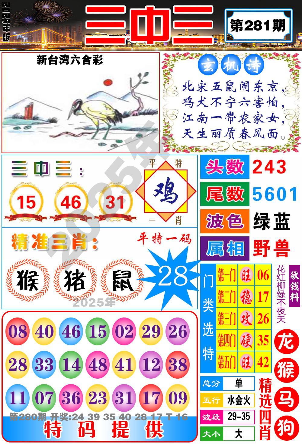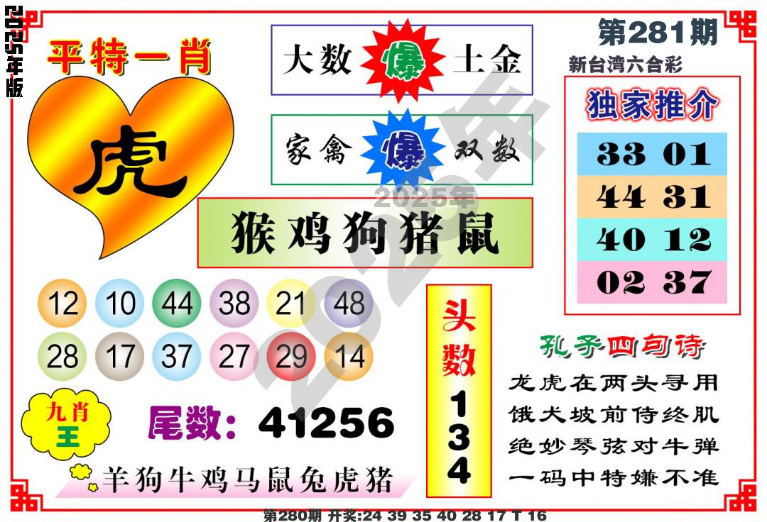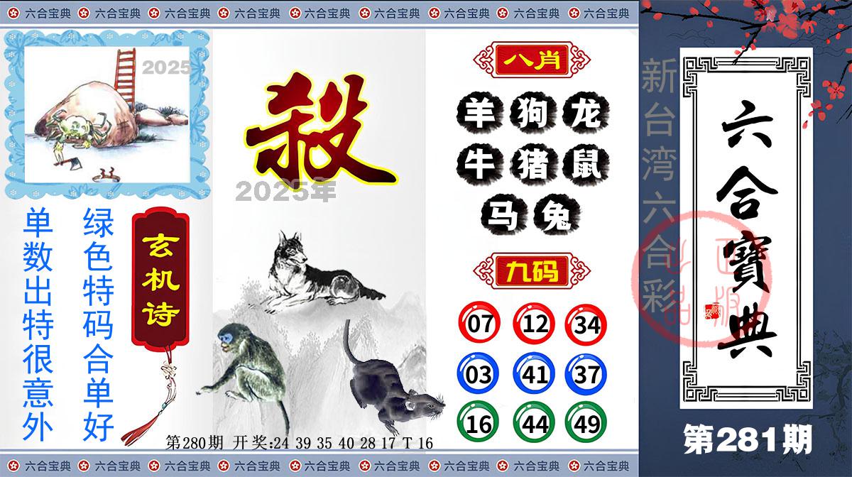 2025279期:七尾 9-1-6-0-2-4-3 开:18鼠