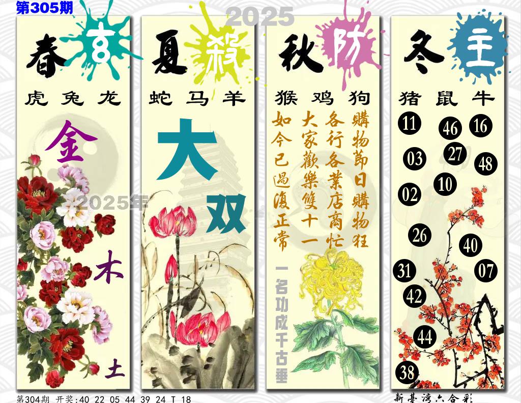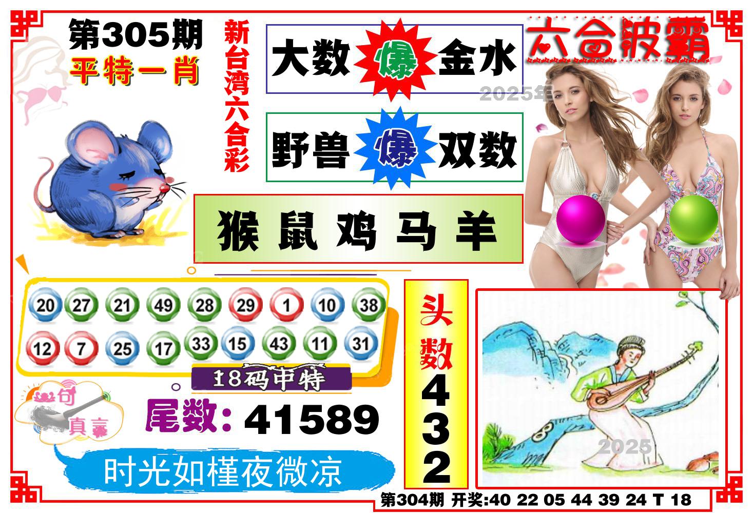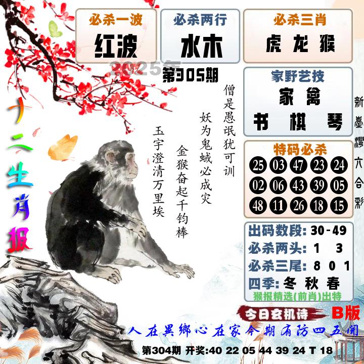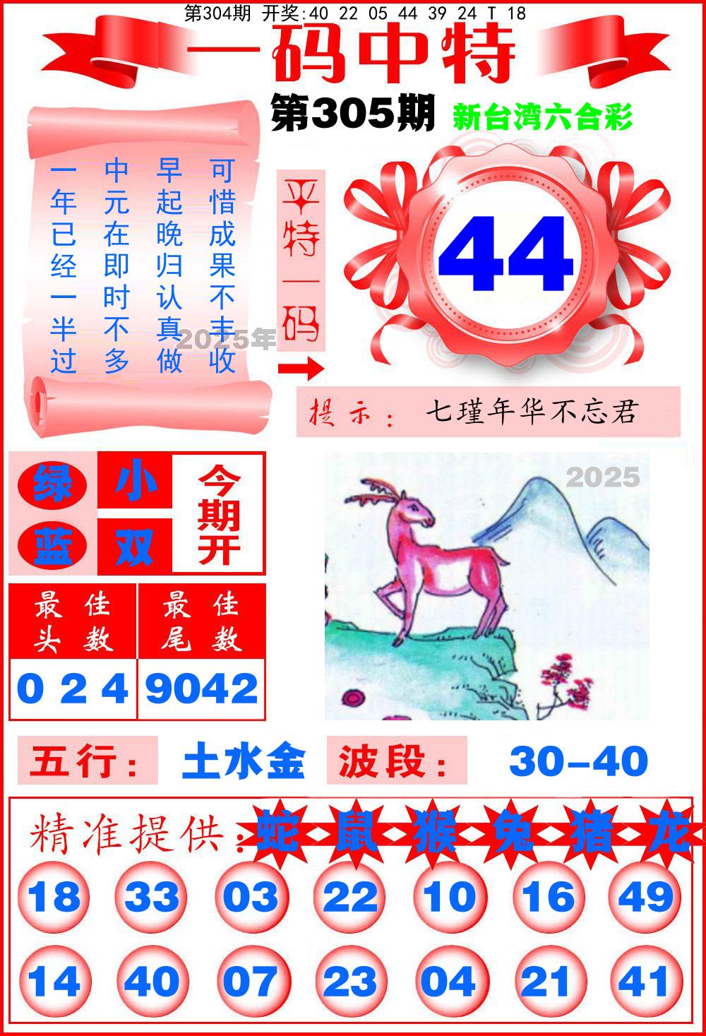 | 2025304期:九肖 | 虎蛇马猴羊鸡龙鼠牛 | 开:18鼠 |